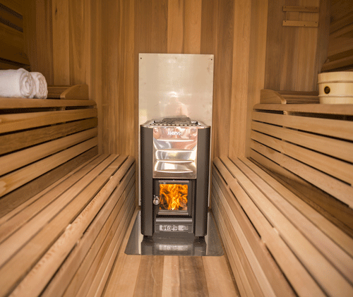 All of our outdoor pre-fab saunas are also available with wood burning saunas heater.